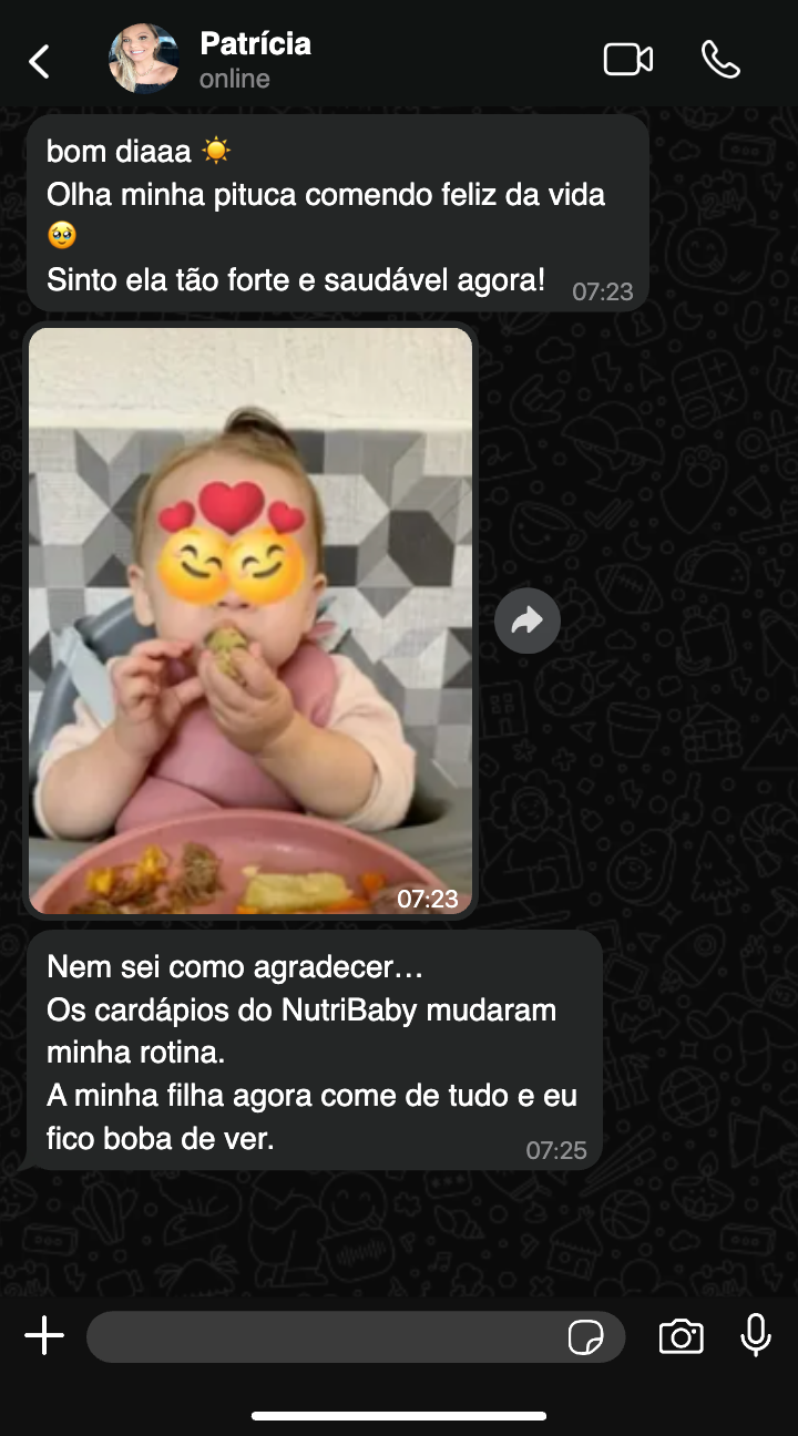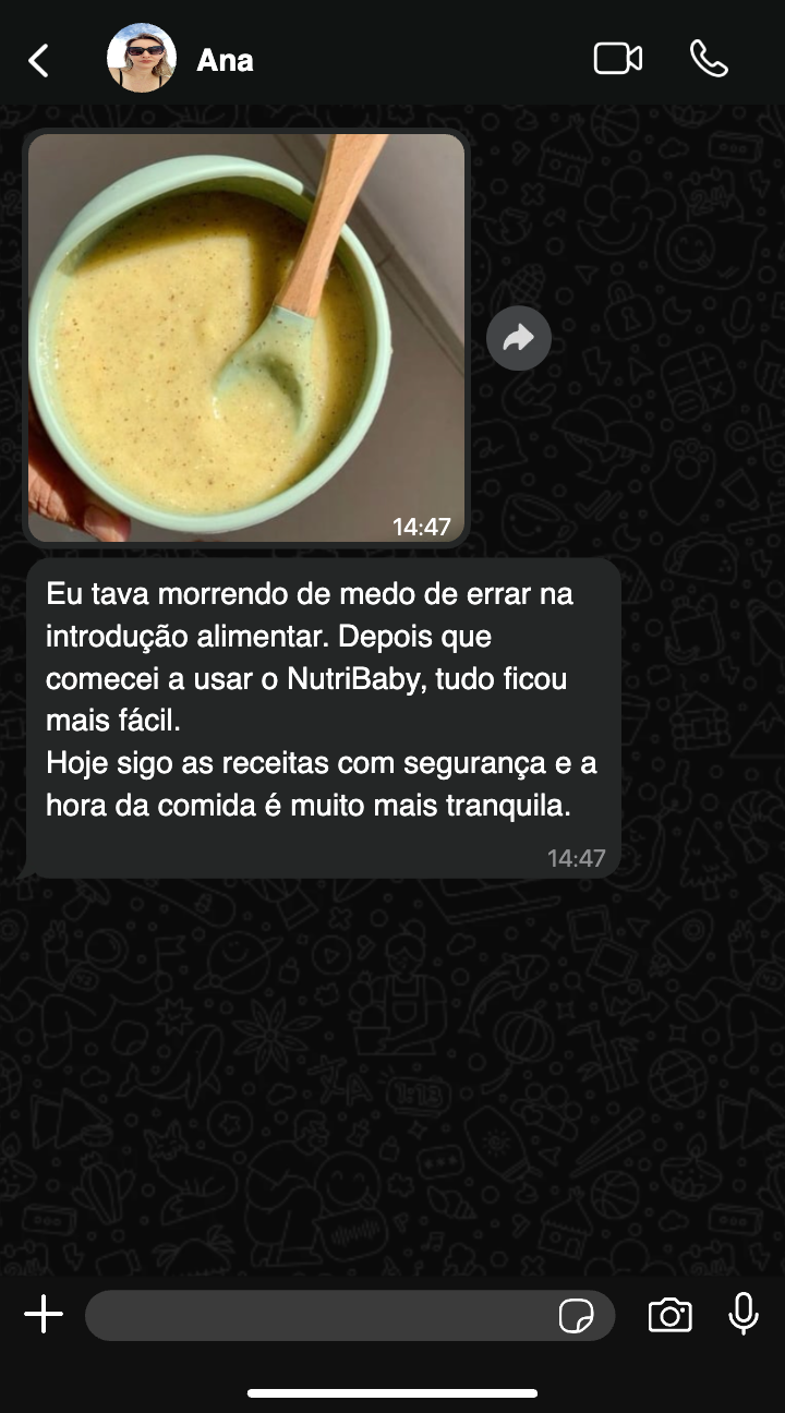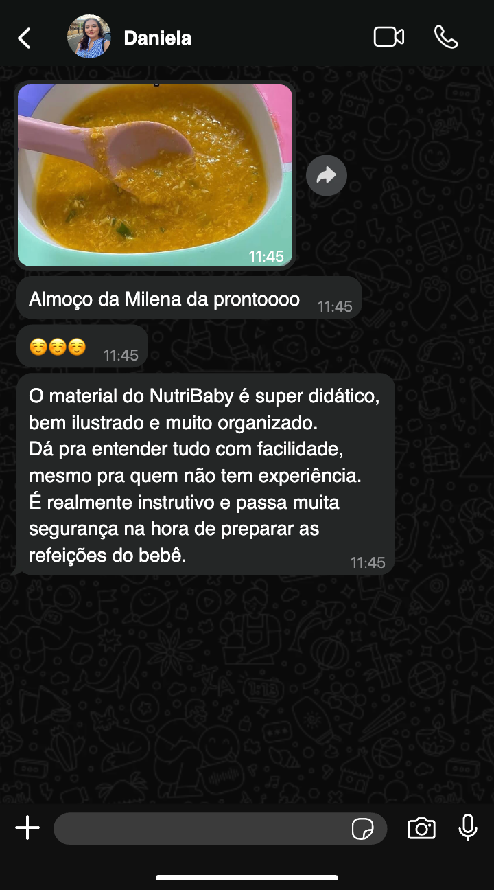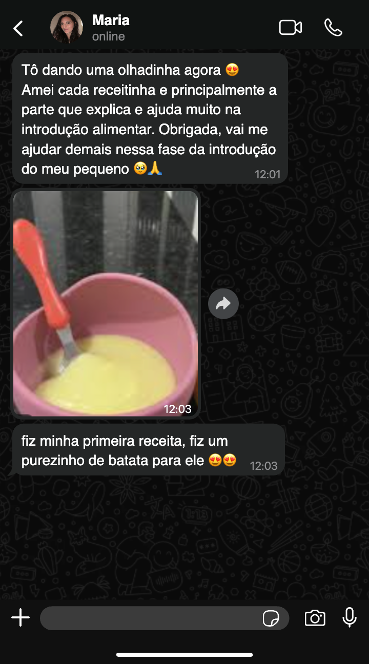 As receitas foram pensadas com foco em segurança, textura adequada e progressão alimentar, reduzindo riscos e aumentando sua confiança.