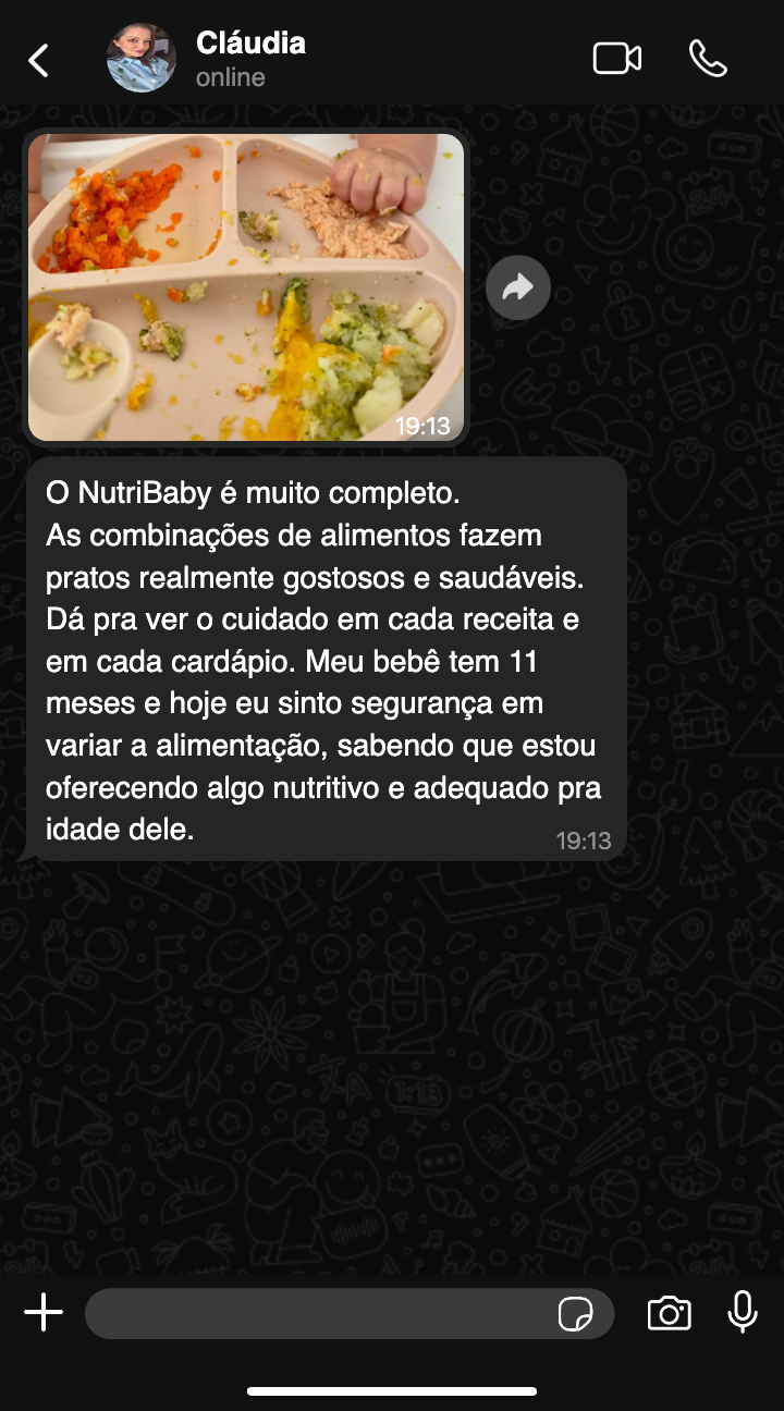 Você aprende combinações e preparos que respeitam o tempo do bebê e tornam as refeições mais leves e naturais.