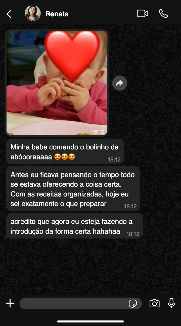 Aqui você encontra receitas organizadas por fase, com texturas seguras e orientações claras para cada etapa da introdução alimentar.
